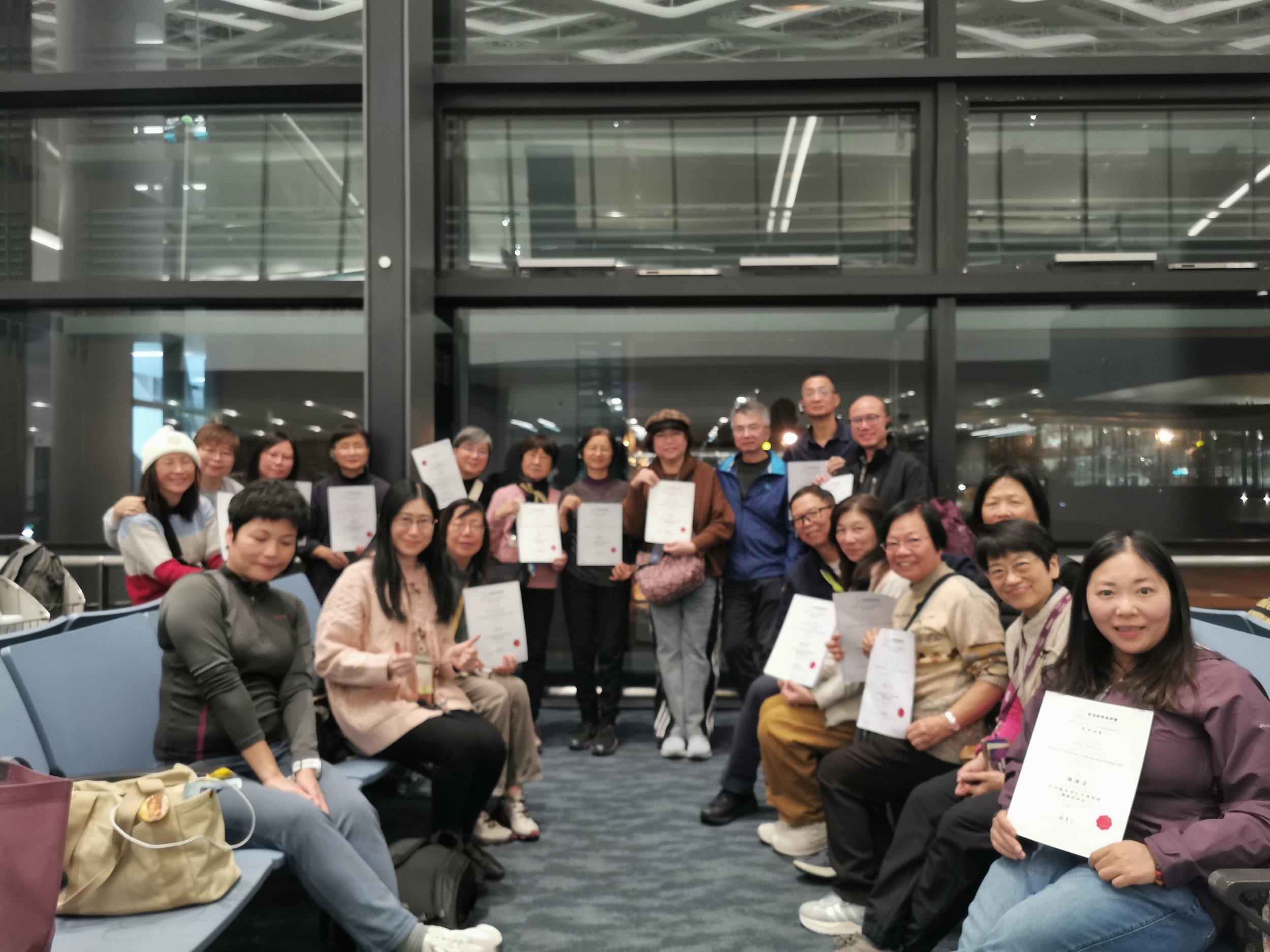 本會與香港中文大學專業進修學院CUSUS合辦第三屆「博物館及社區導賞教育」課程圓滿結束,學員們獲得證書,笑容滿滿 (2025年12月)